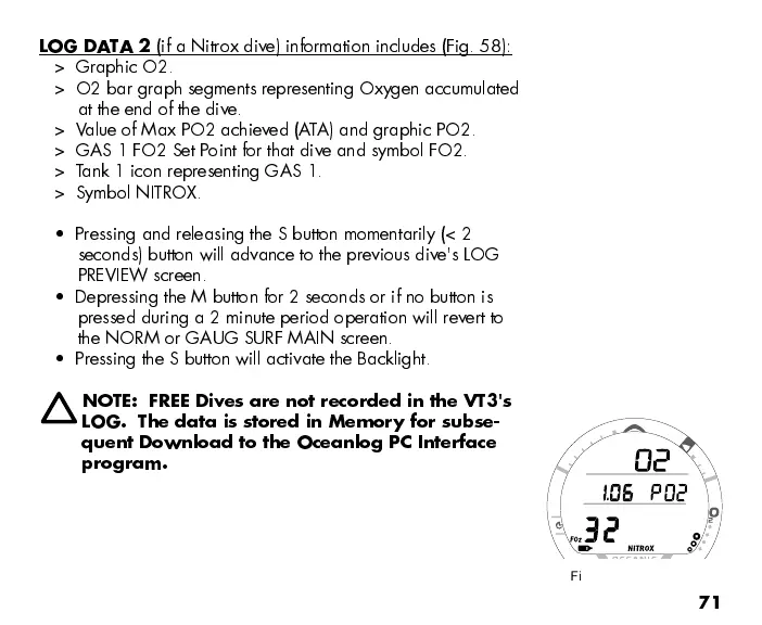 (if a Nitrox dive) information includes (Fig. 58):
