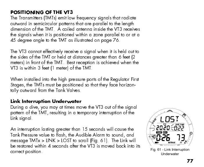 message TMTx > LINK > LOST to scroll (Fig. 61). The Link will