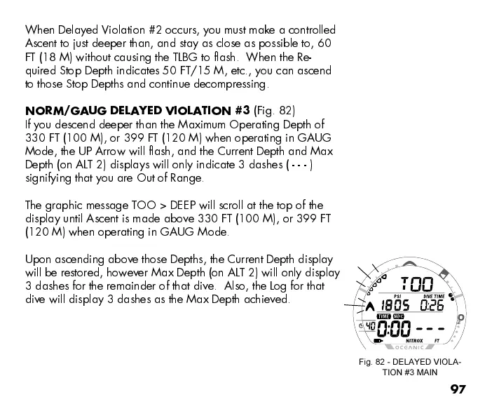 display until Ascent is made above 330 FT (100 M), or 399 FT