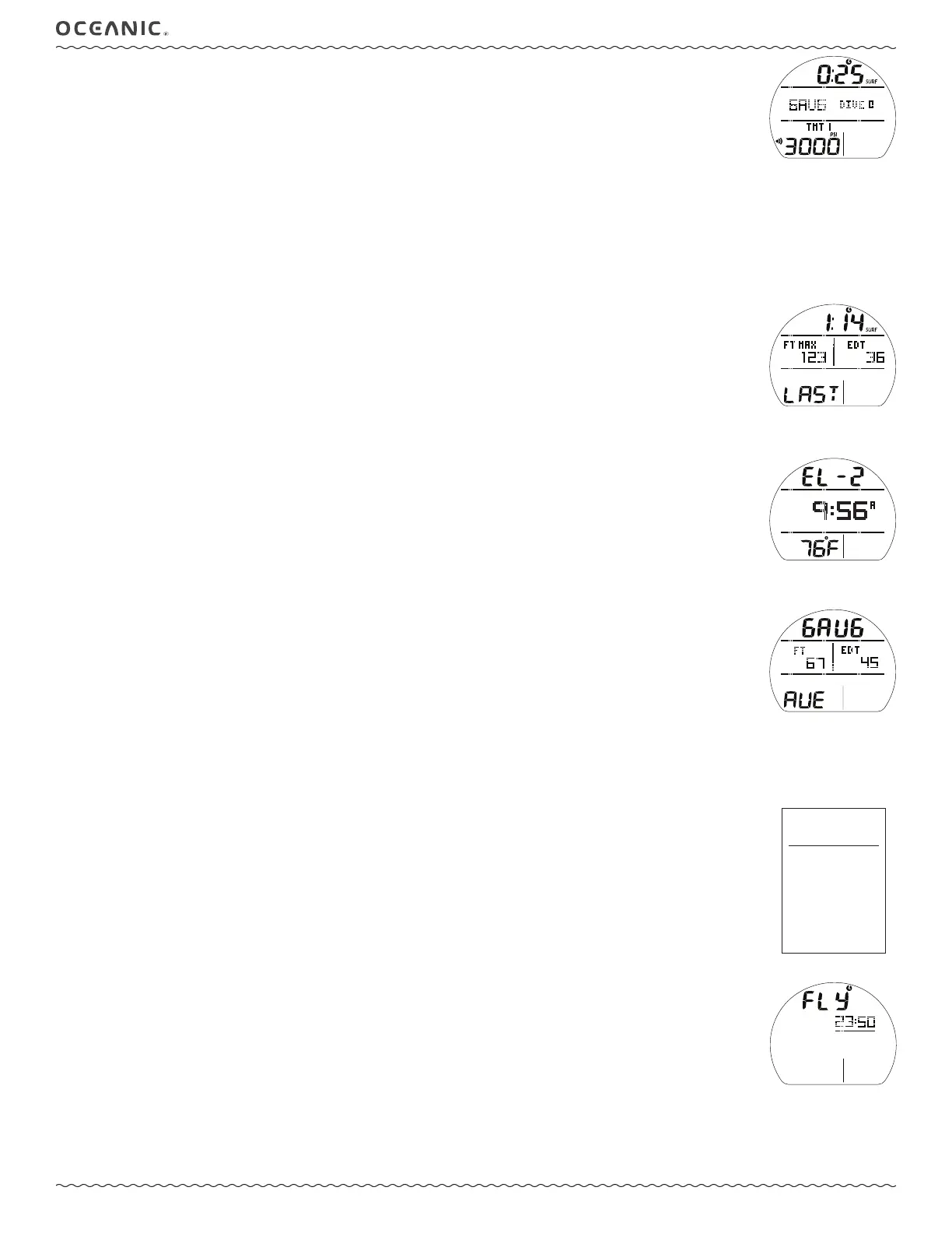 > Graphic LAST, indicating that data is from the dive previously conducted while in GAUG mode.