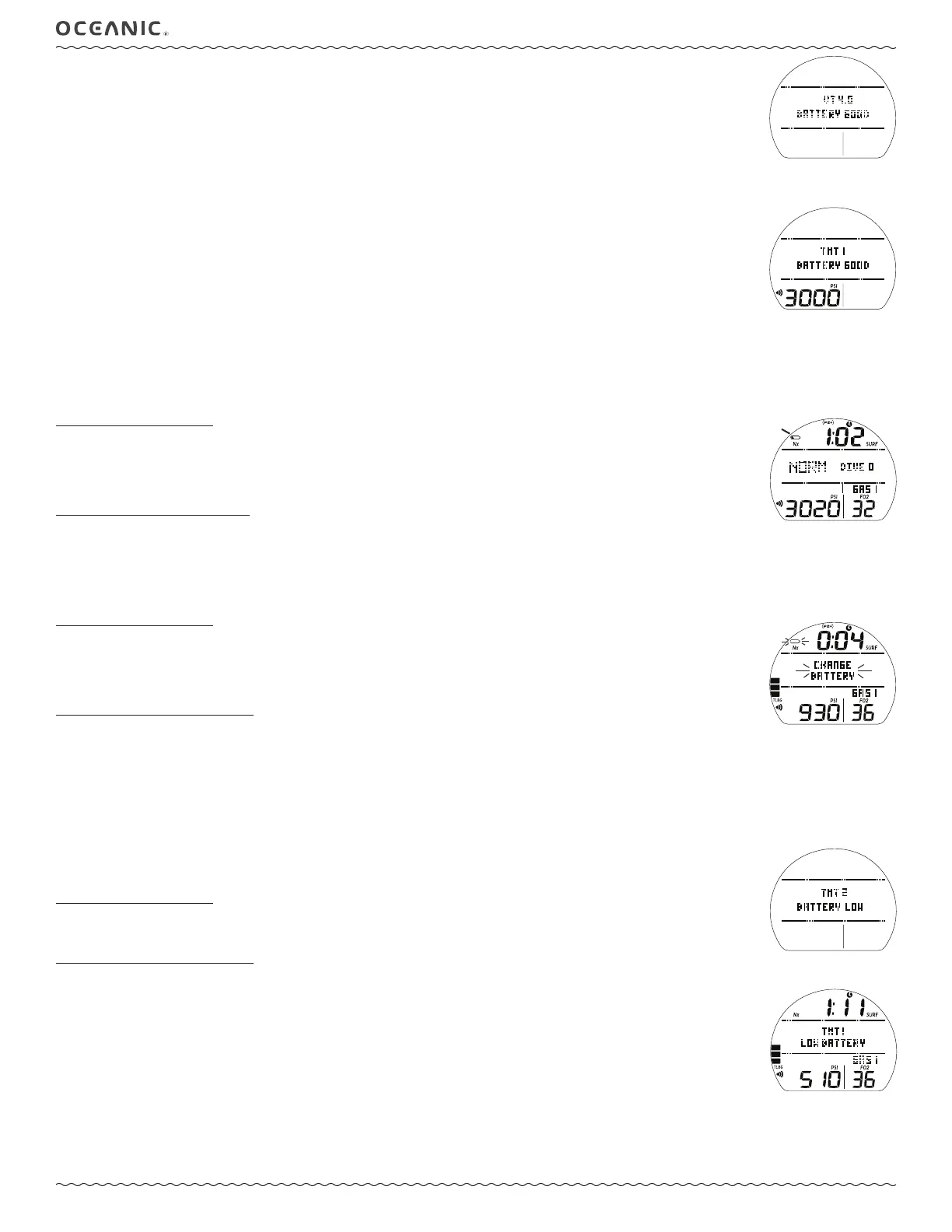• The graphics TMTx LOW BATTERY alternate with the graphics NORM (or GAUG) and DIVE xx on the SURF Main screen