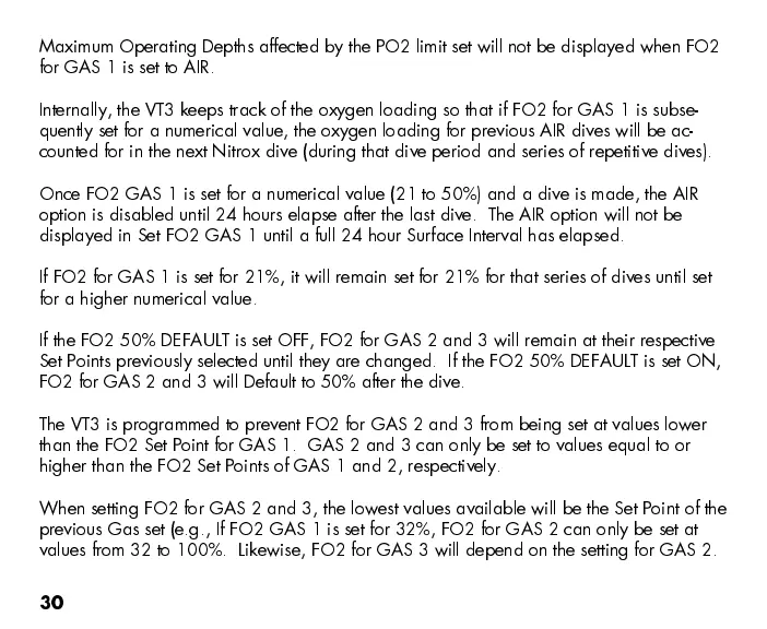 Internally, the VT3 keeps track of the oxygen loading so that if FO2 for GAS 1 is subse-