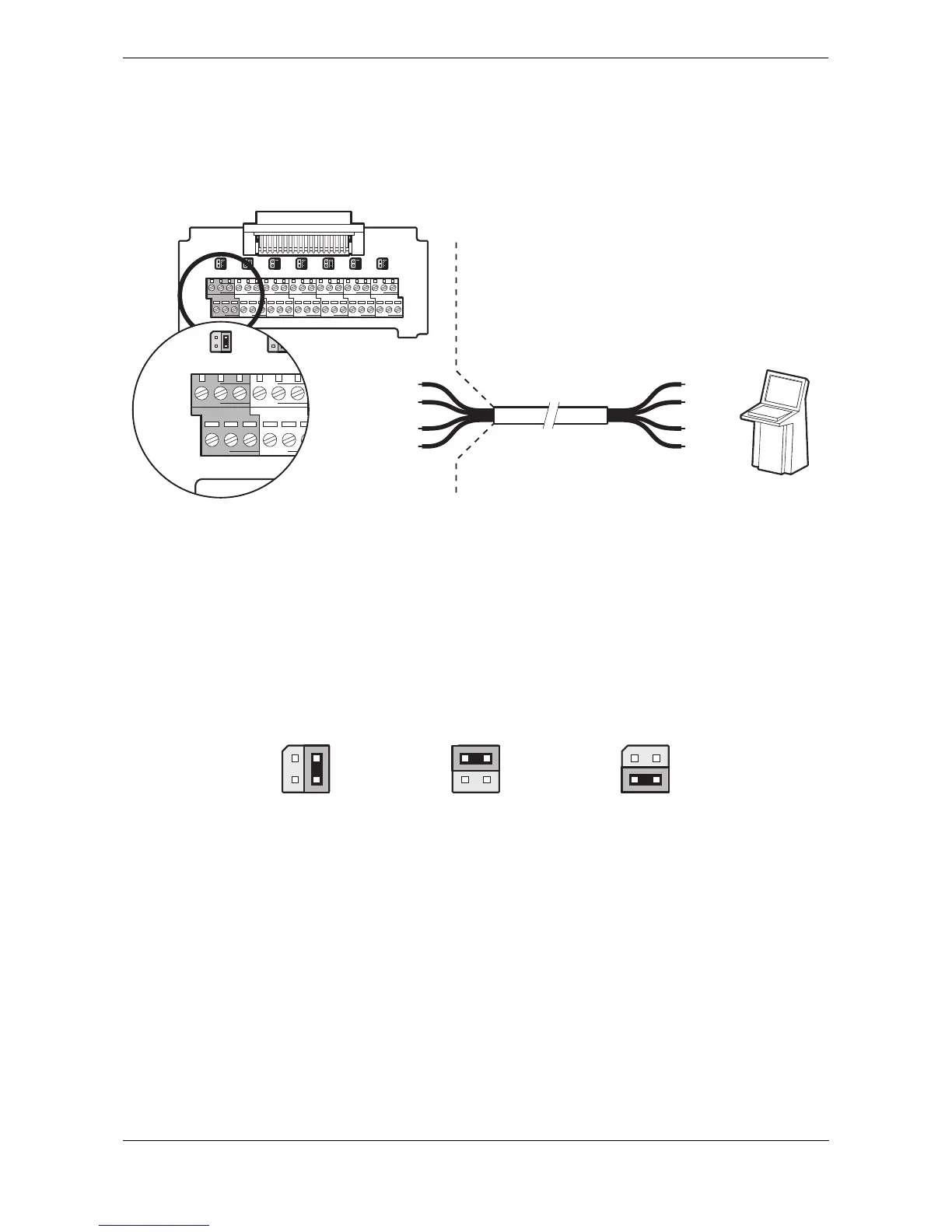 input connection in the junction box. The jumper positions for each termination option are shown in