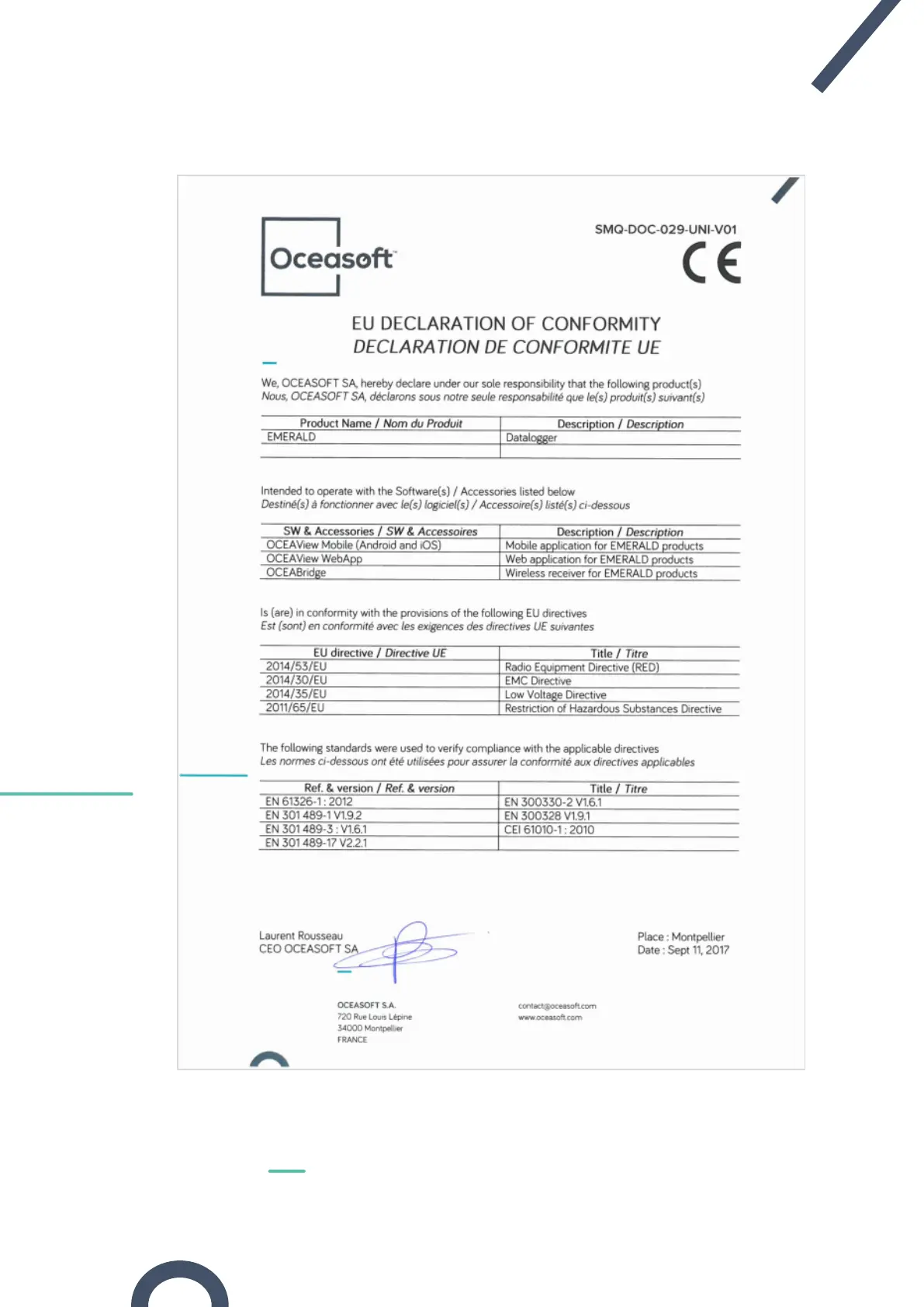 Oceasoft Emerald - EU Declaration of Conformity