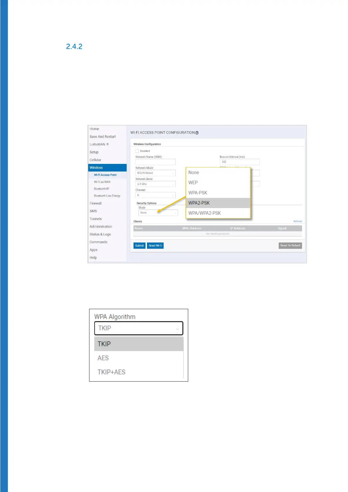 choose WPA or WPA2, click to select the appropriate WPA Algorithm:
