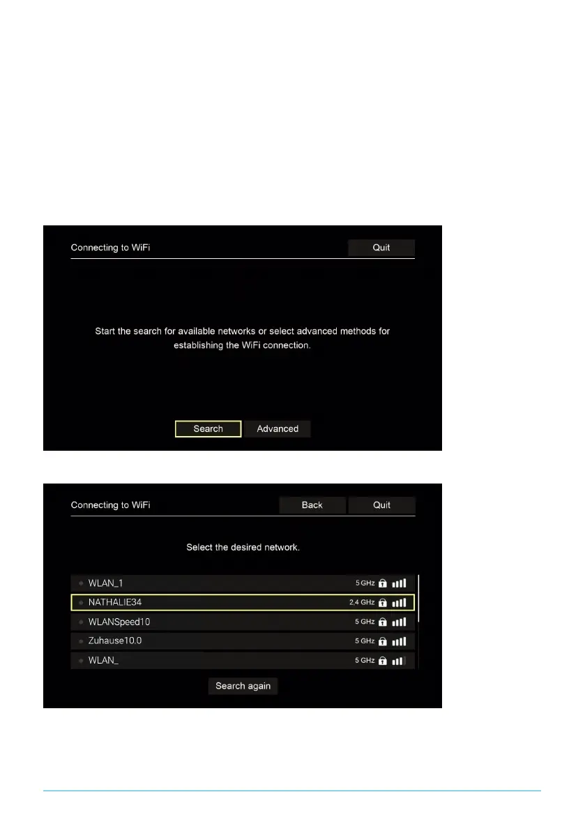 1. In the setup menu, select the menu item Connecting to WiFi.