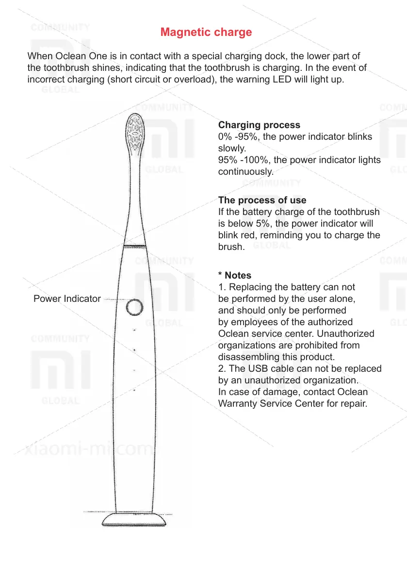 the toothbrush shines, indicating that the toothbrush is charging. In the event of