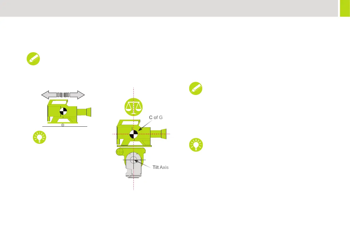 head’s tilt axis as shown below, slide the payload fore and aft