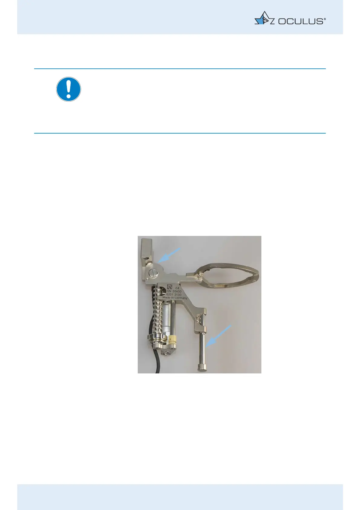The loupe holder of the BIOM® 5 must be fully pulled out to the