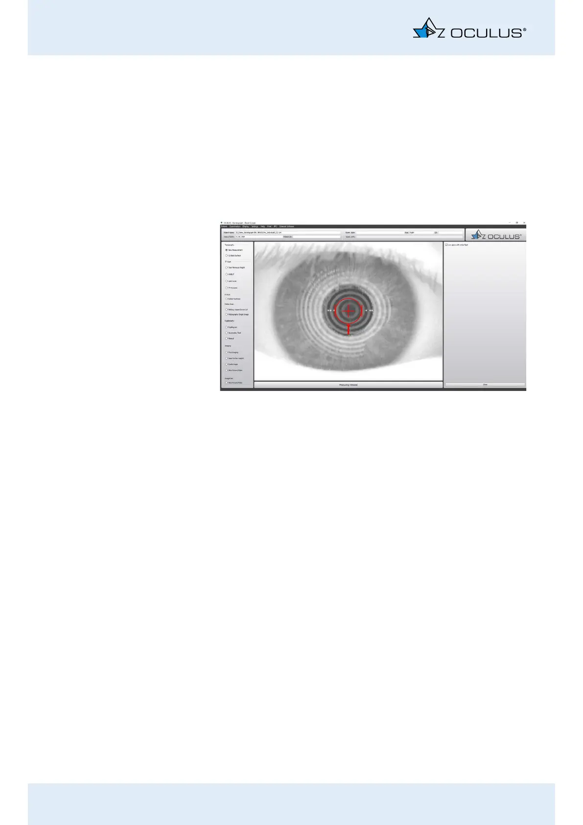 11.2 Manually marking the center of the Placido rings