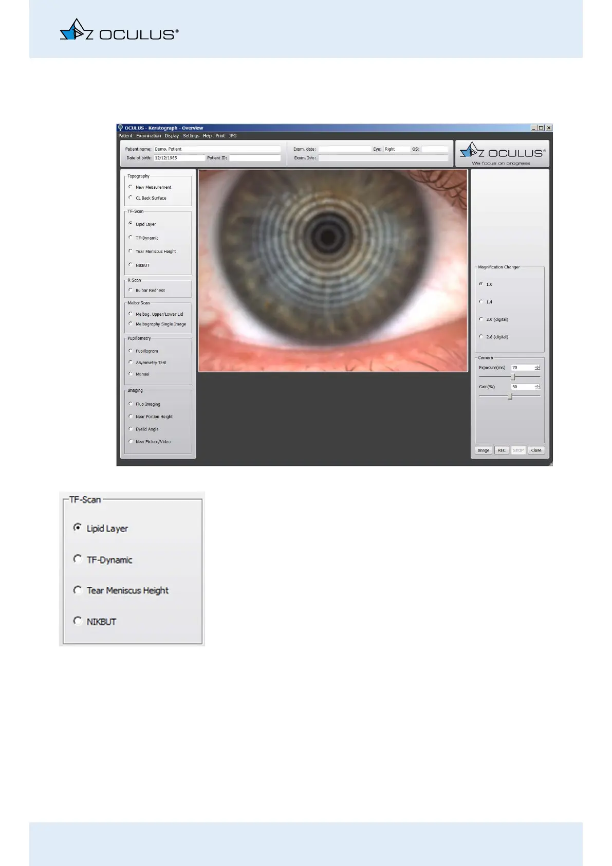 The TF scan offers the following possibilities, with which you can exam-