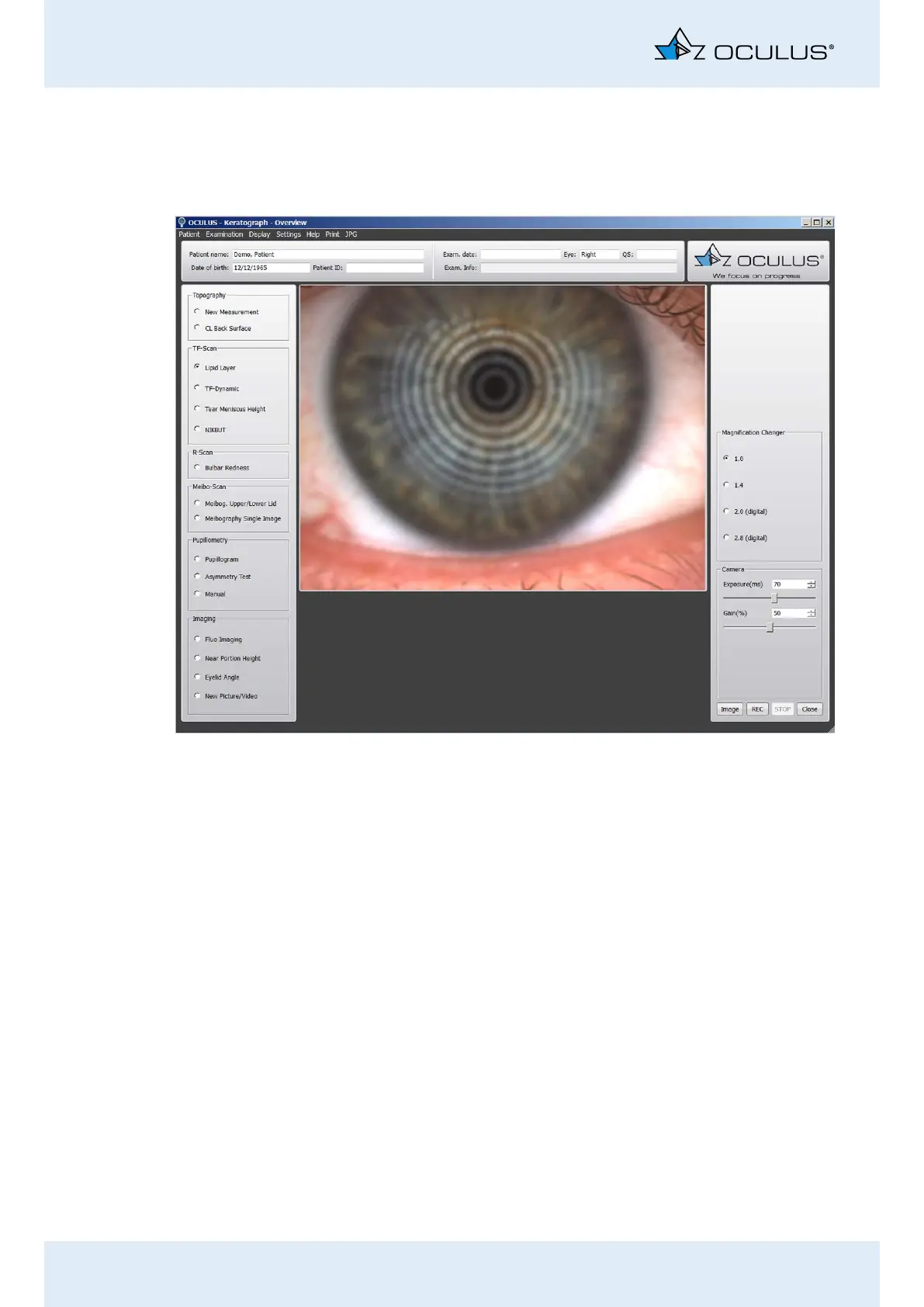 eye. Now properly focus the Placido rings.