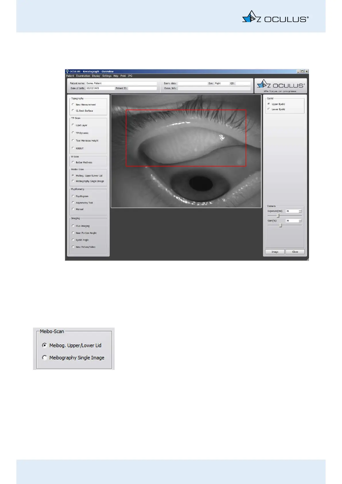 Start the recording of the upper eyelid. To do this, press the [Im-
