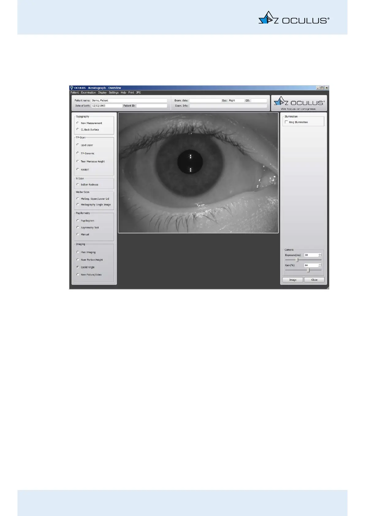 Fig. 17-4: “Eyelid angle measurement” imaging function
