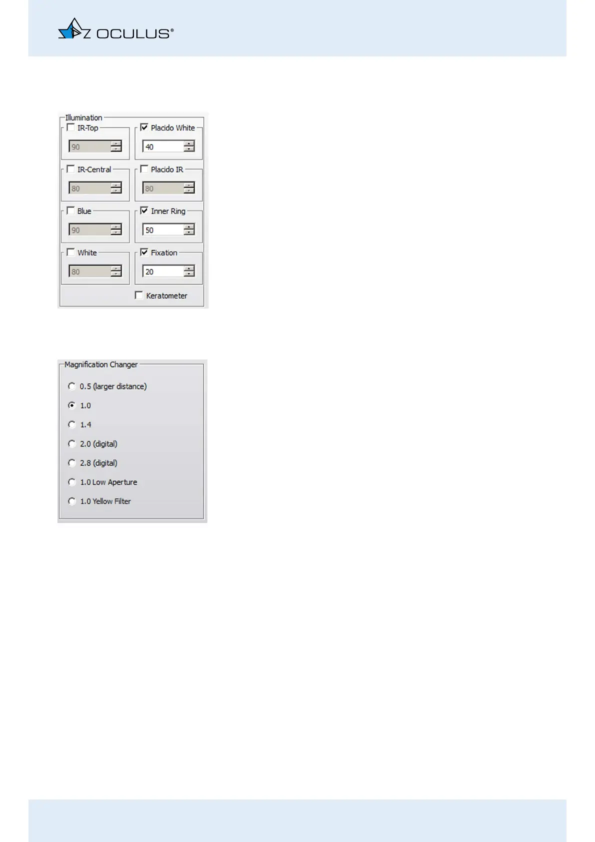 [Keratometer] checkbox: Keratometry marks for aligning the topogra-