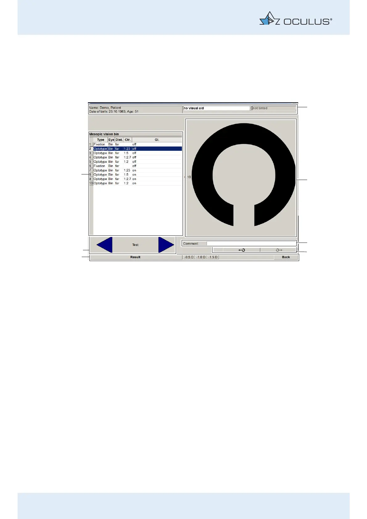 2 Optotype display 6 Arrow keys for steps: “back” and “next”
