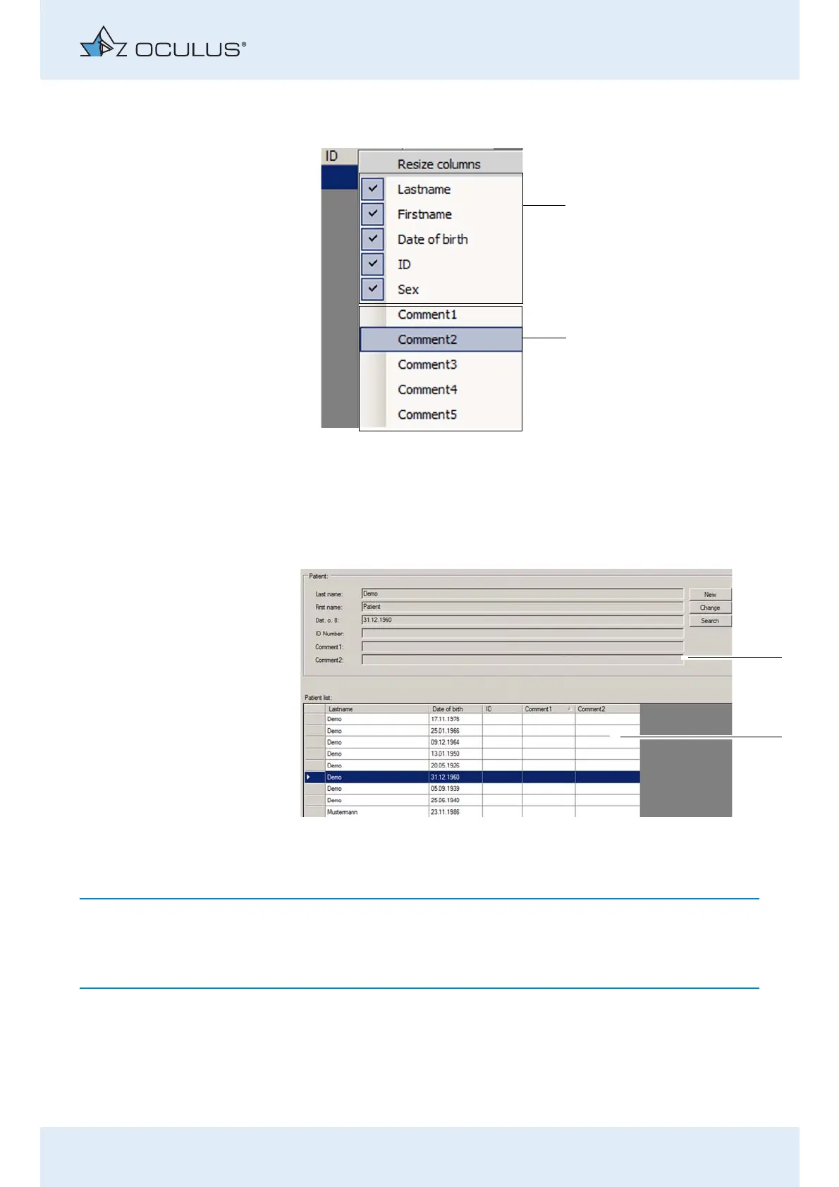 2 Attribute "Comment2" in the patient list