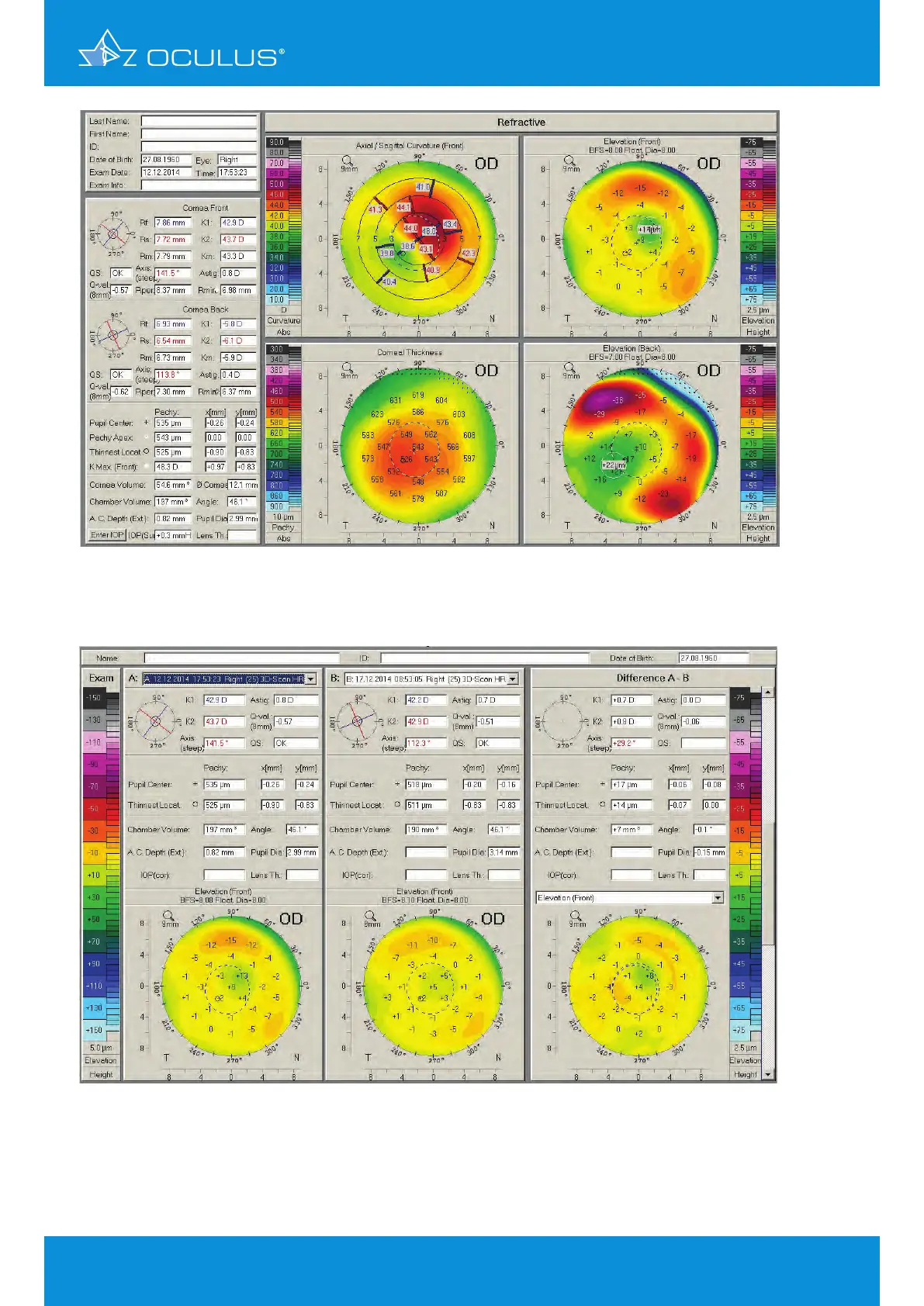 Figure 25: Compare 2 Exams showing changes in anterior surface elevation within