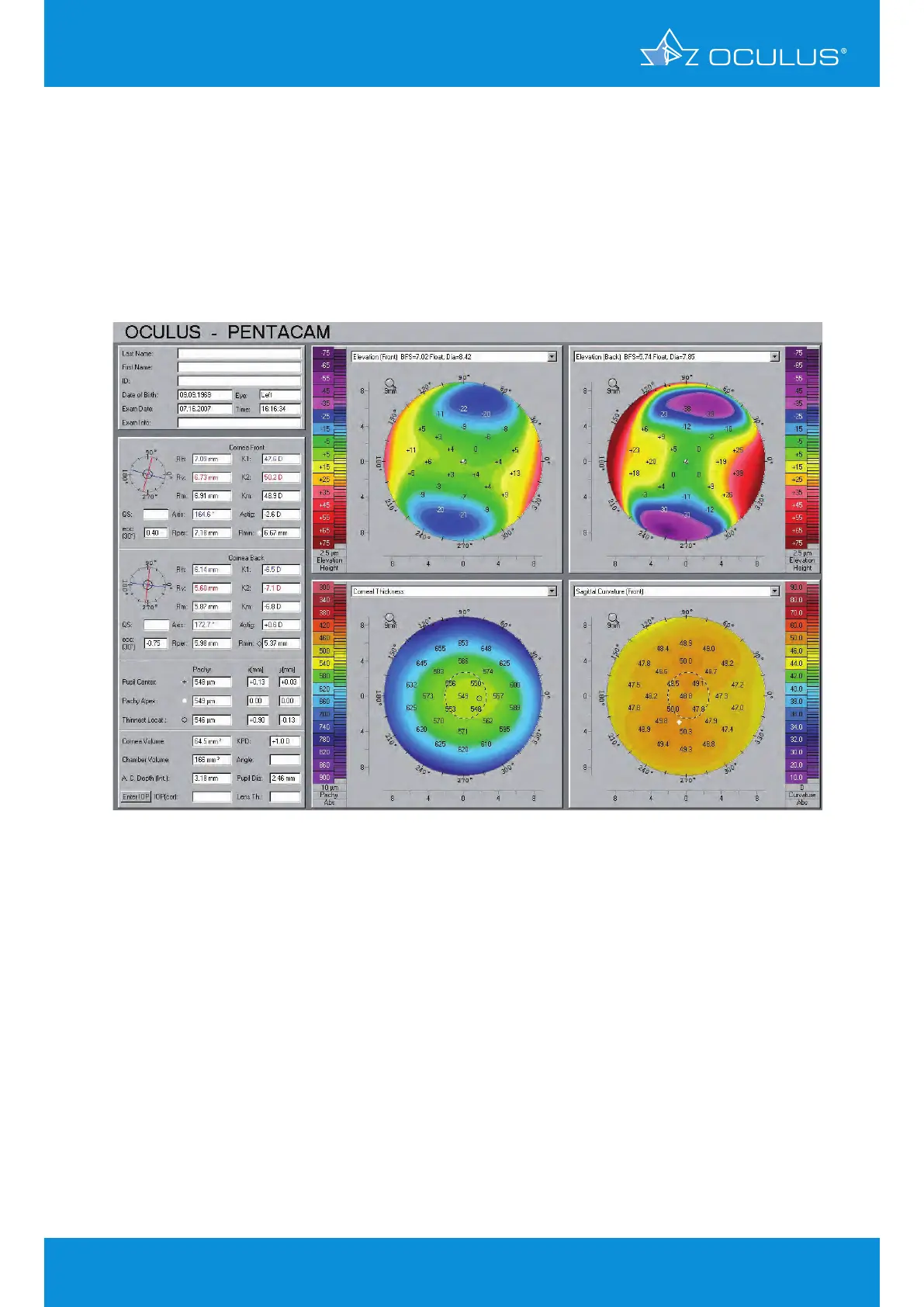 the elevation maps do not reveal any suspicious areas. The pachymetry map is well centered with