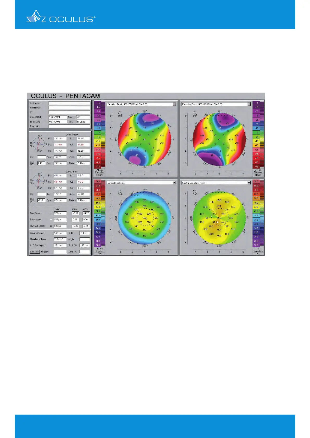 sagittal curvature. The anterior elevation map is symmetric, and the curvature shows a symmetric