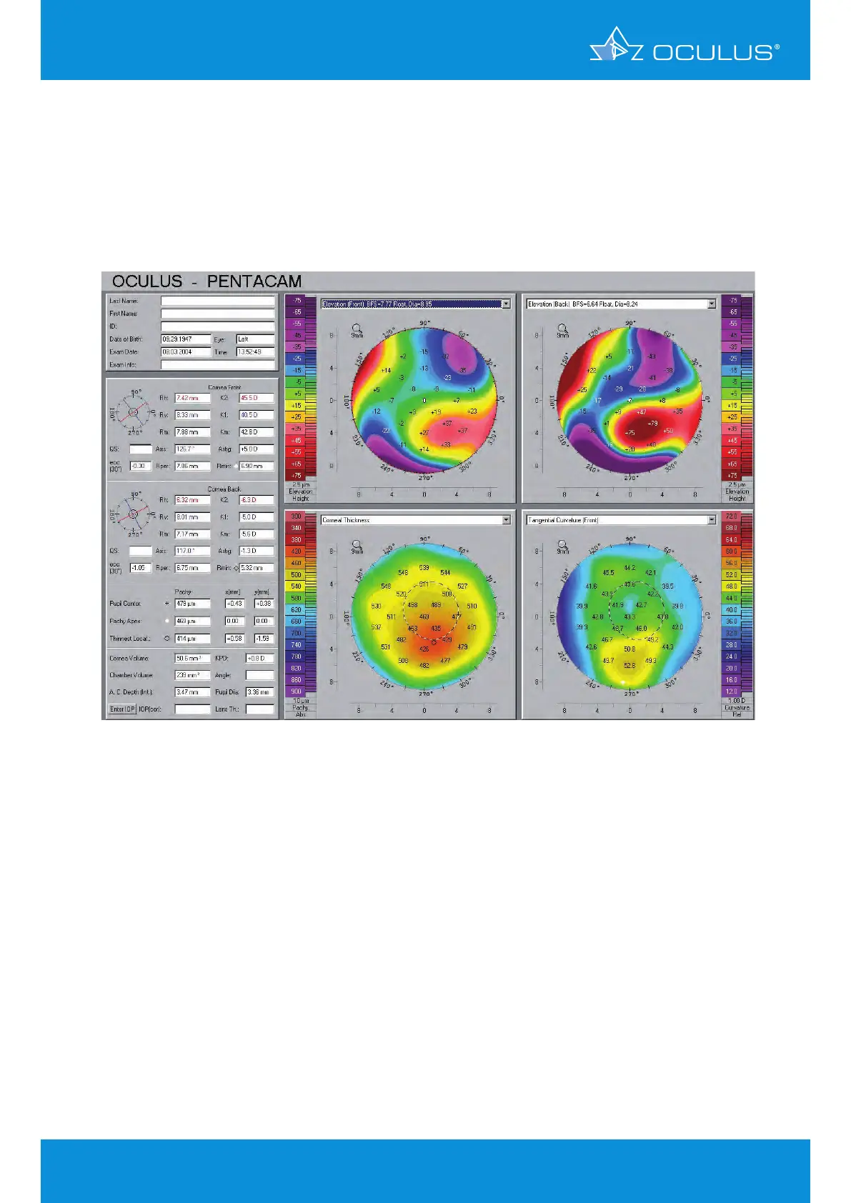displacement of the pachymetry map (thinnest reading 414 μm) (Figure 71). The anterior elevation