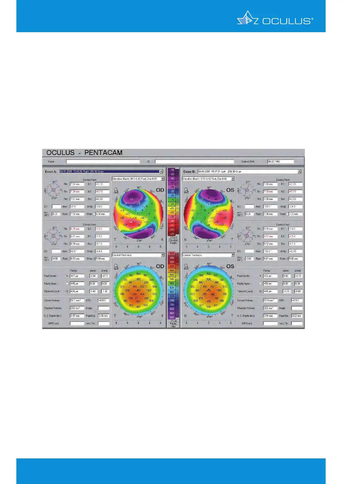 Look at the Show 2 Exams display of posterior elevation and pachymetry of OD and OS in this