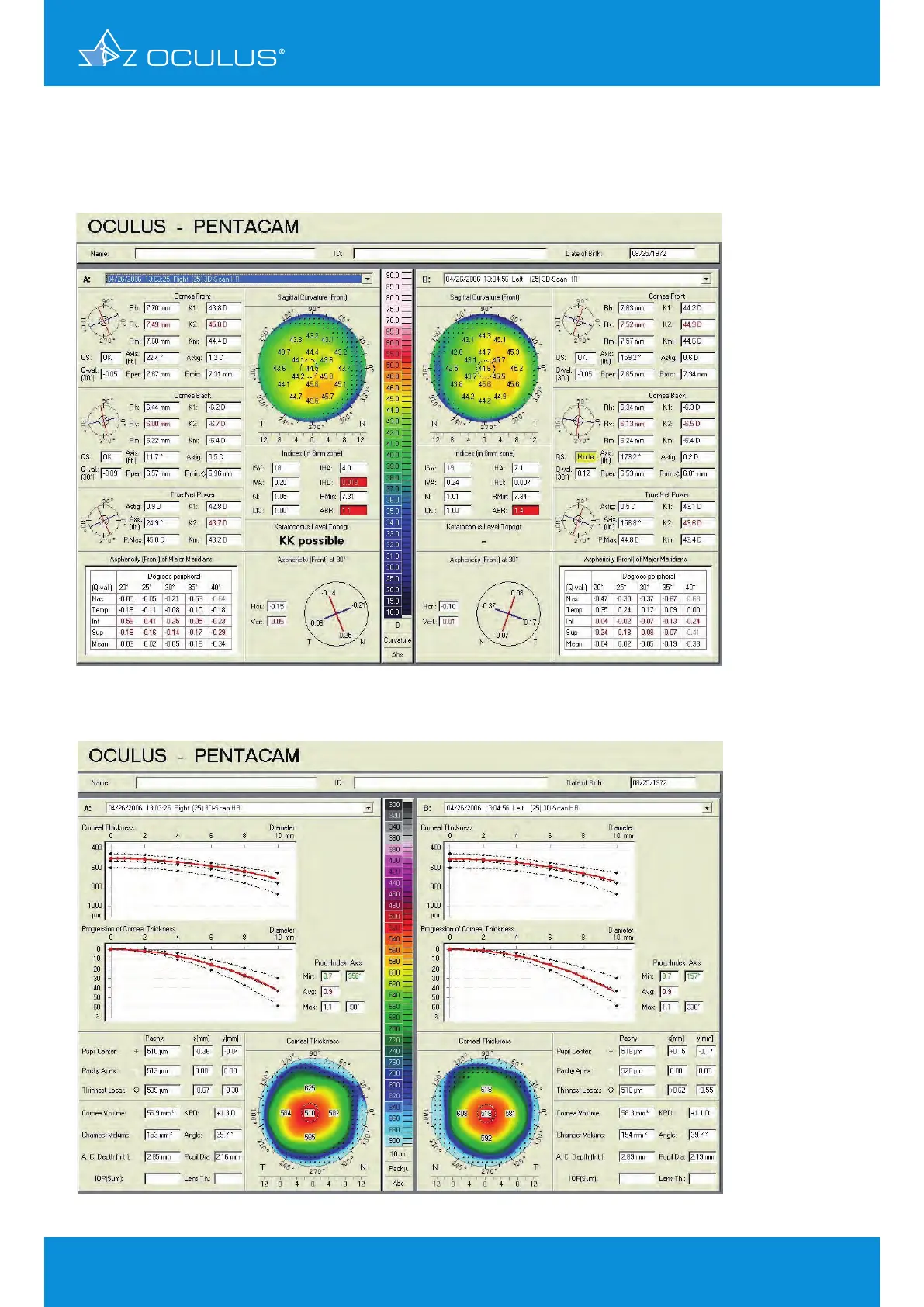 Figure 84: Show 2 Exams Pachymetric showing a normal cornea