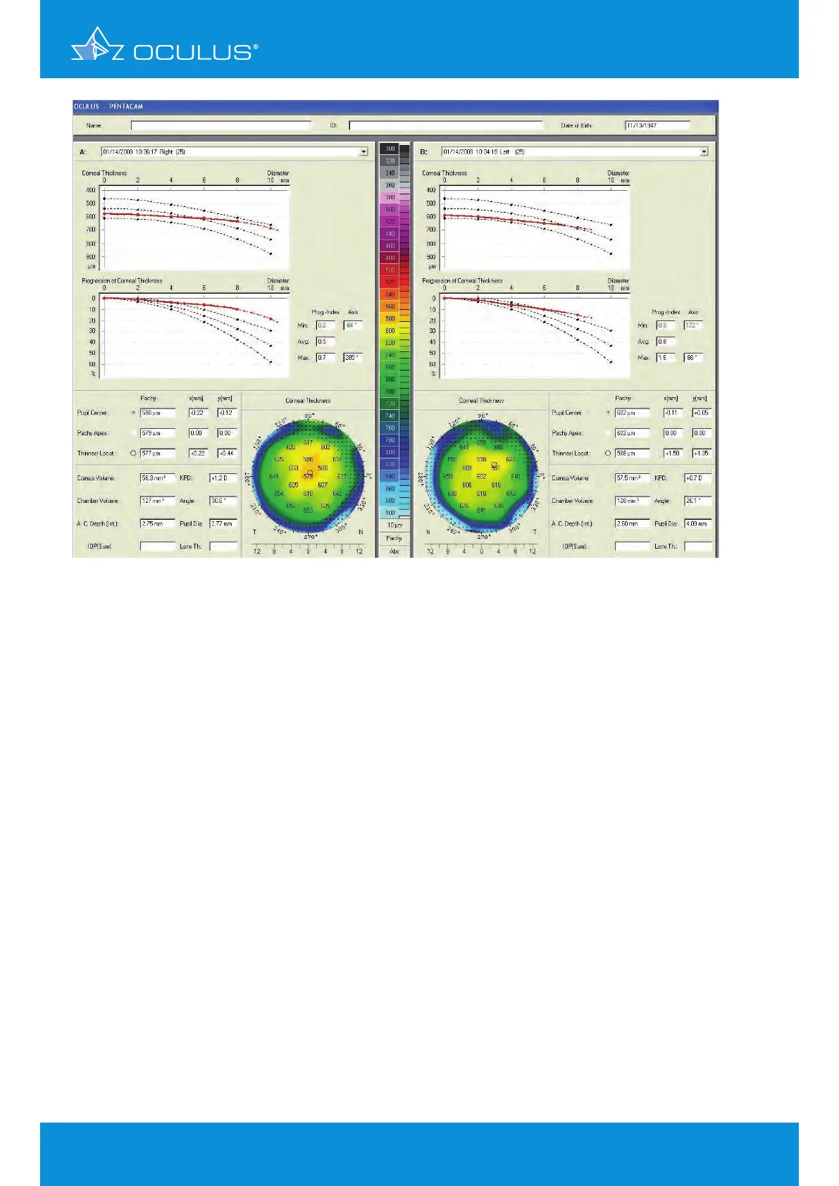 Figure 93: Show 2 Exams Pachymetric showing an abnormal cornea in OD and OS