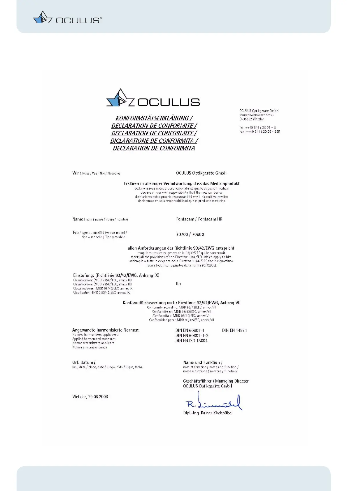 Instruction Manual Pentacam® / Pentacam HR® (G/70700/0109/en) 27 / 29