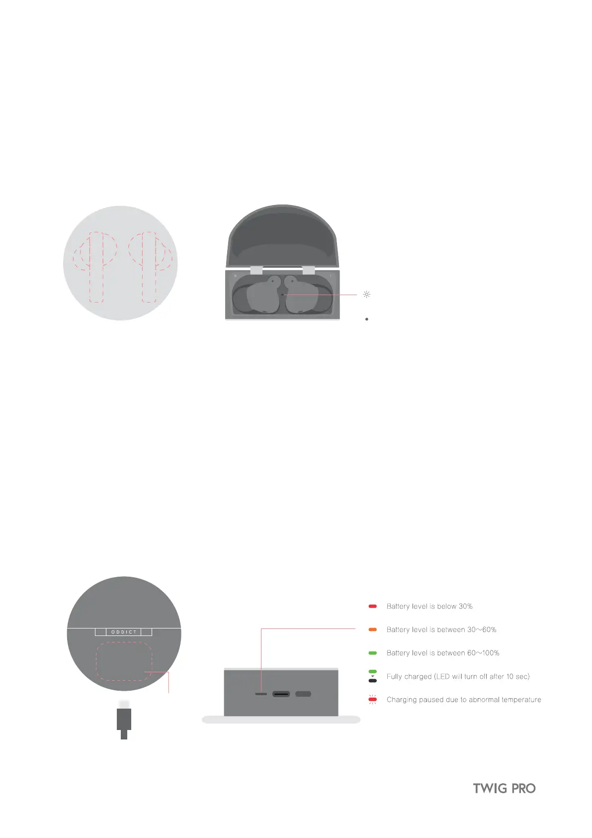 ① Connect the Type-C charging cable to the port at the bottom of the TWIG PRO case.