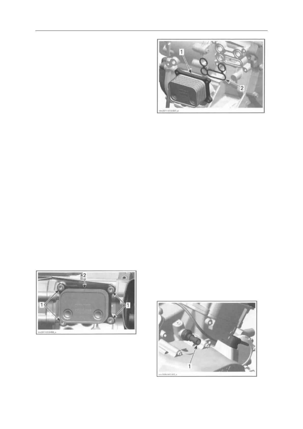 Remove oil cooler retaining screws.