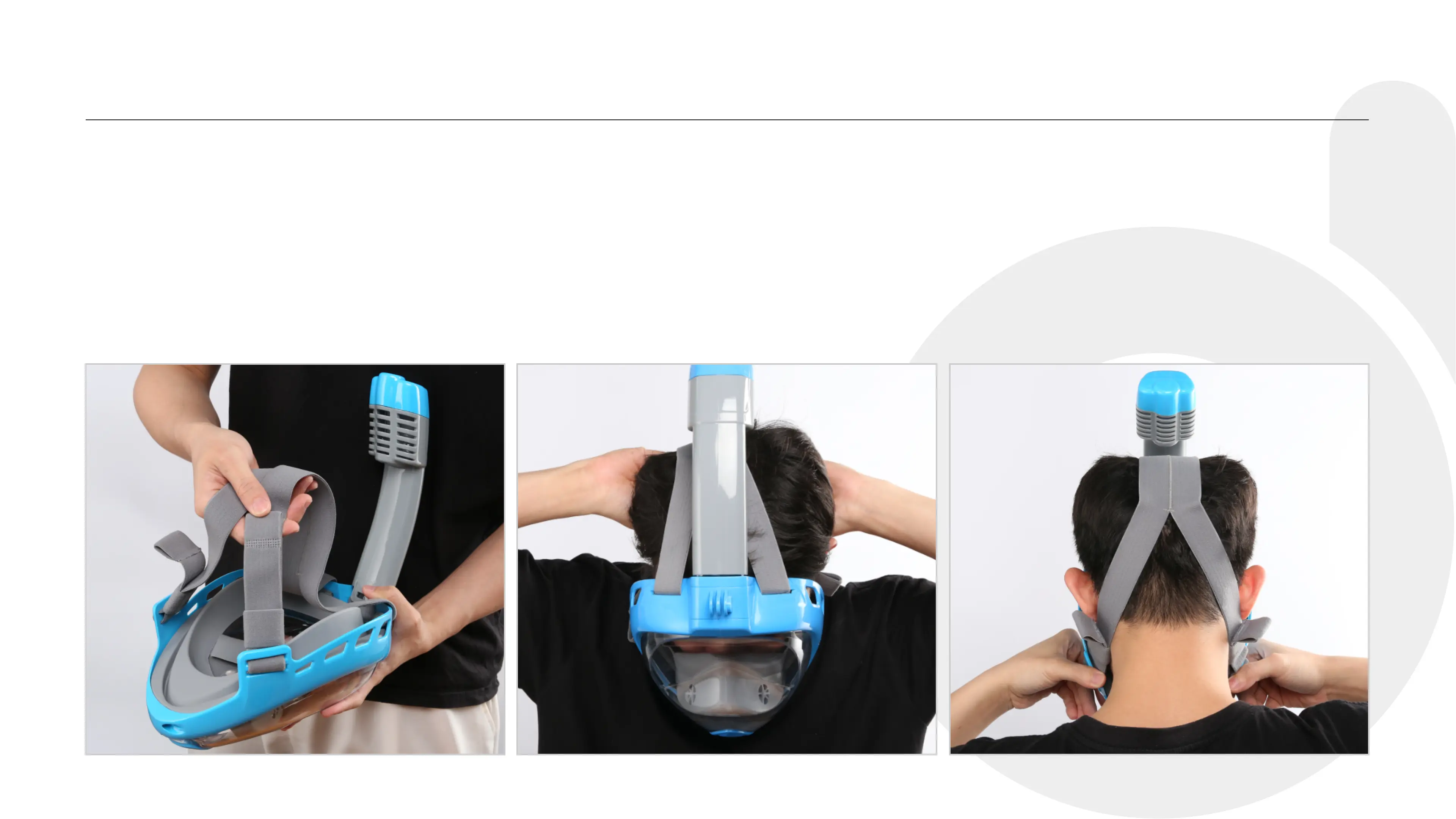 1.Check and confirm that the mask and breathing pipe are clean. Shake the breathing pipe ensure that the floating base of the pipe head can be moved up and