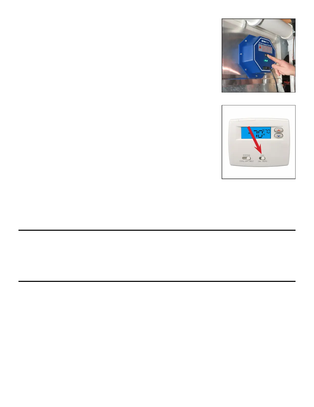 14. After 24 hours, set the fan switch on the thermostatm into “AUTO”