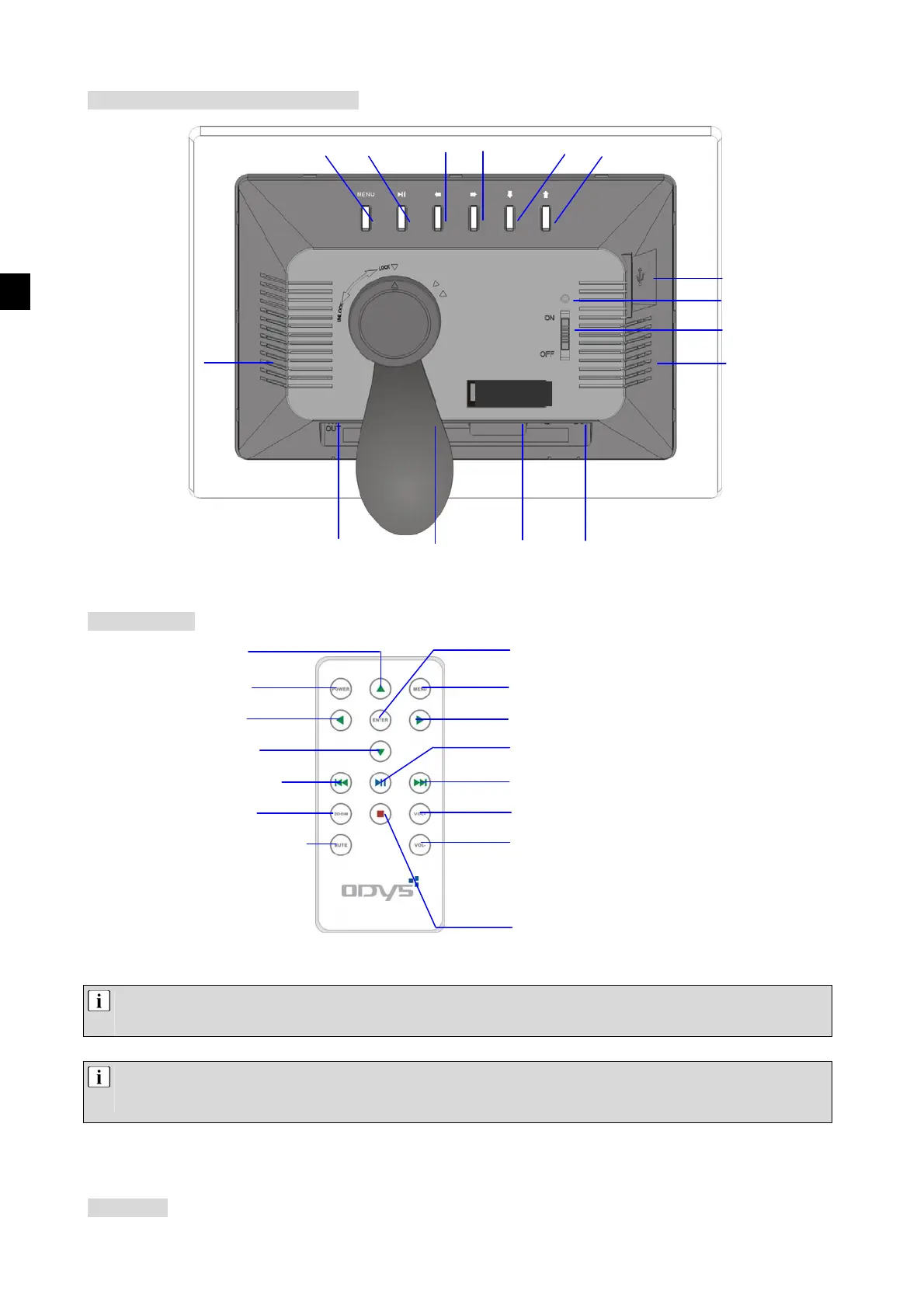 Odys DPF 710 - Device Description; Front and Rear Overview; Remote Control Functions