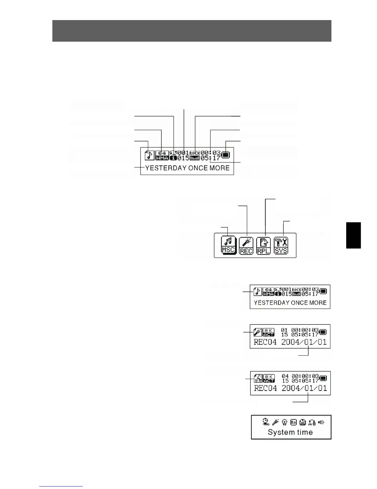 Il display LCD mostra diverse informazioni sui brani musicali attuali, sulla durata e le