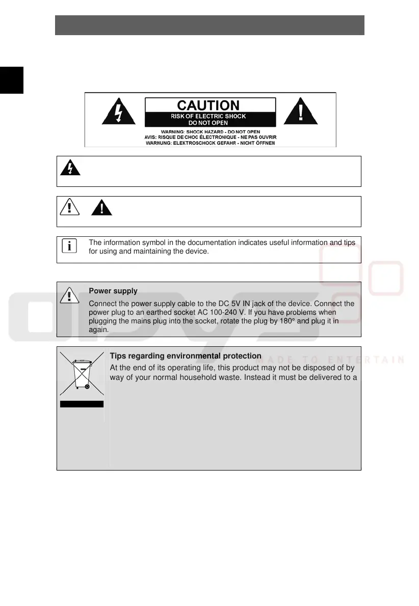 The flash symbol displayed in a triangle warns the user of dangerous electrical