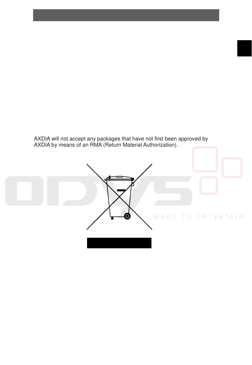 manuals, etc.), unless the AXDIA Service Centre specifies otherwise.