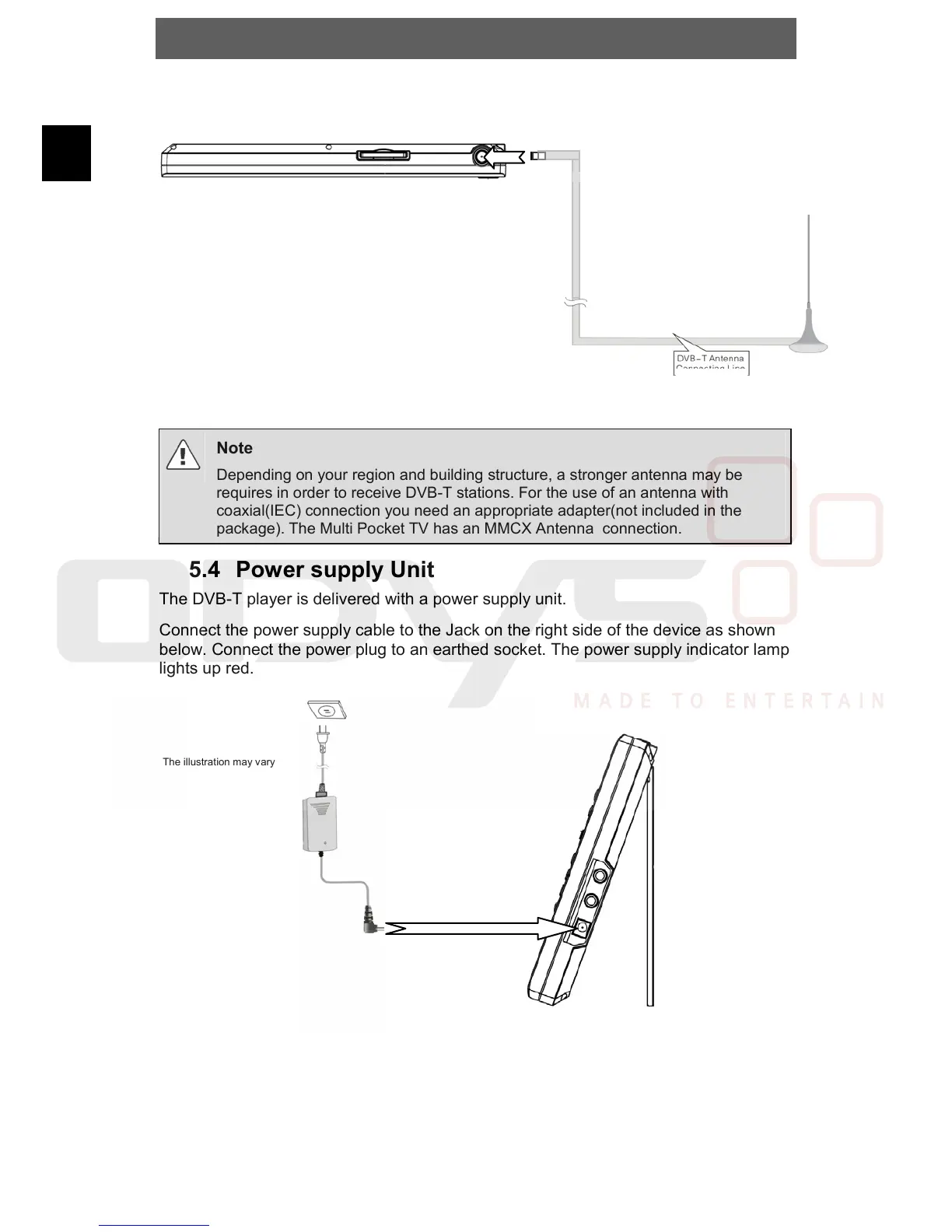 The DVB-T player is delivered with a power supply unit.
