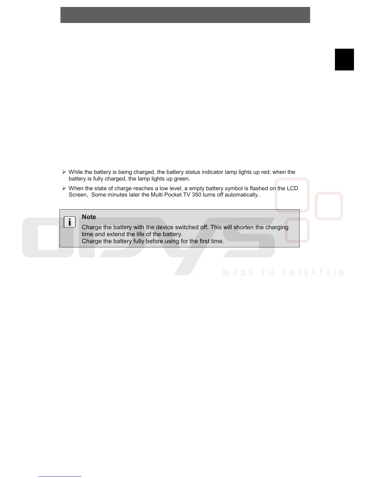 Screen, Some minutes later the Multi Pocket TV 350 turns off automatically..