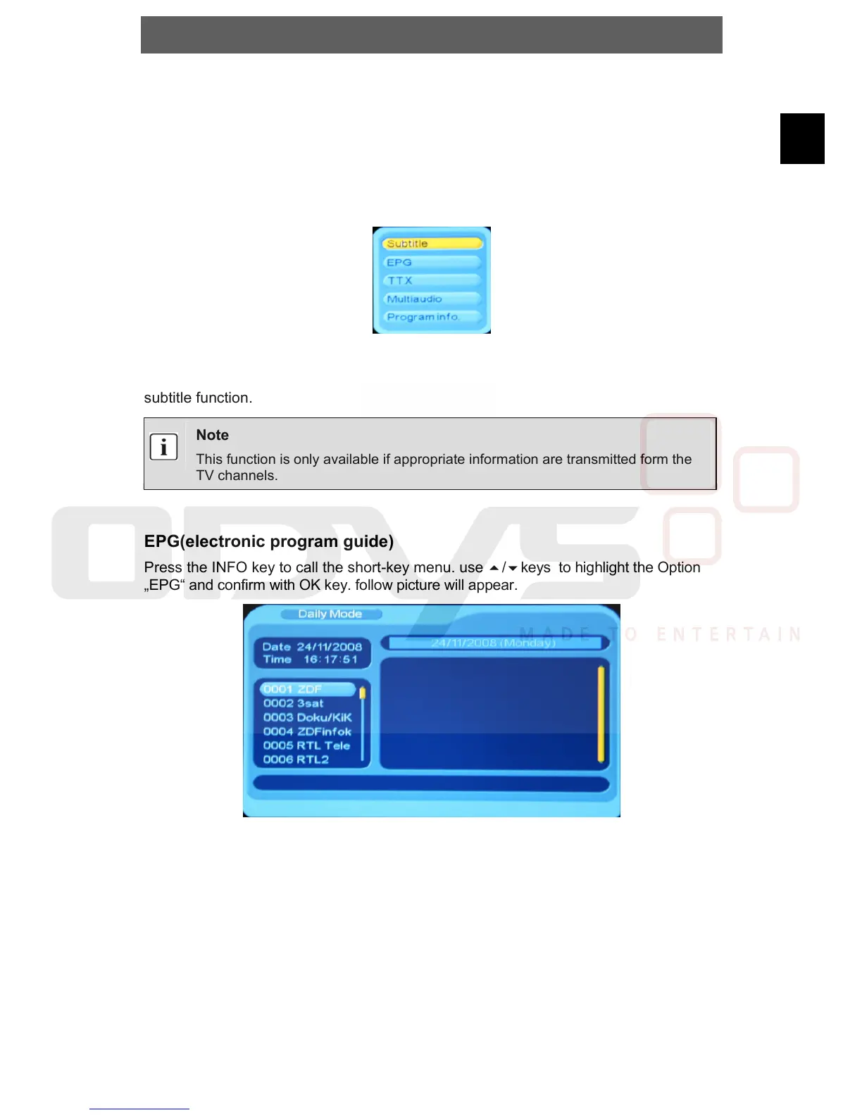„EPG“ and confirm with OK key. follow picture will appear.