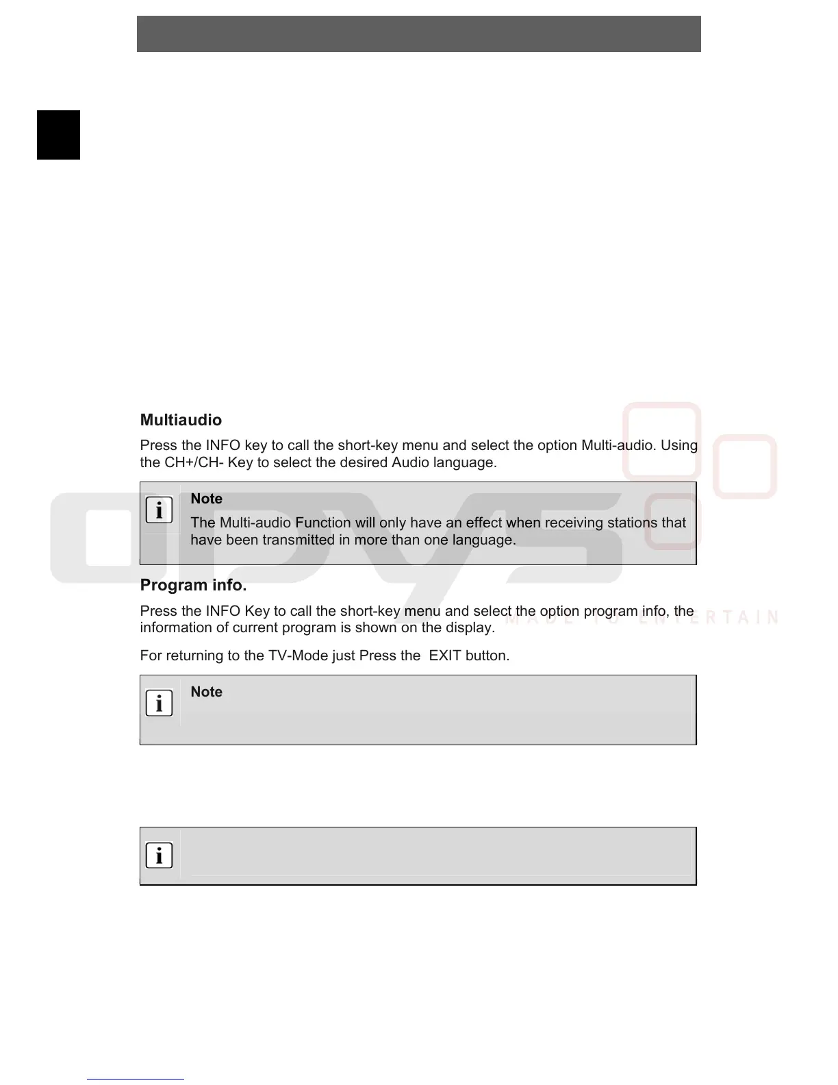 Press the INFO key to call the short-key menu and select the option Multi-audio. Using
