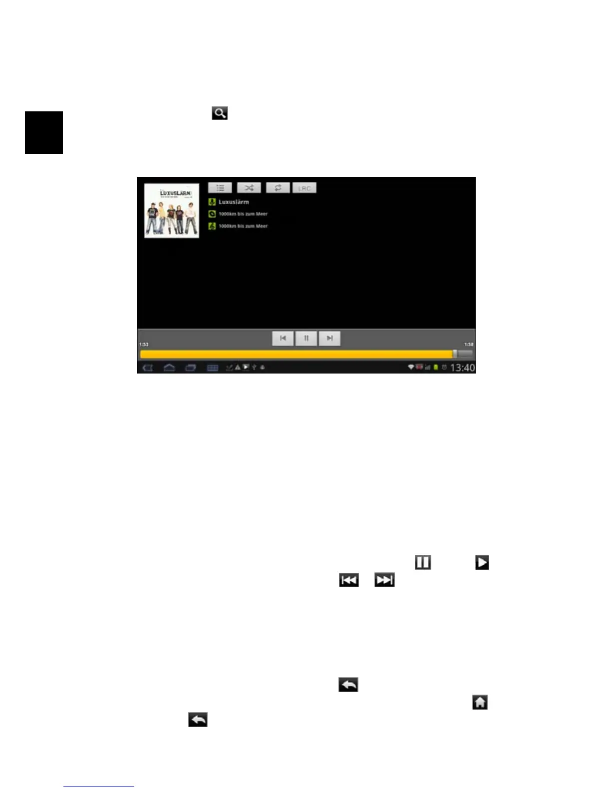 y To pause or resume the playback, tap on the Pause / Play icon.