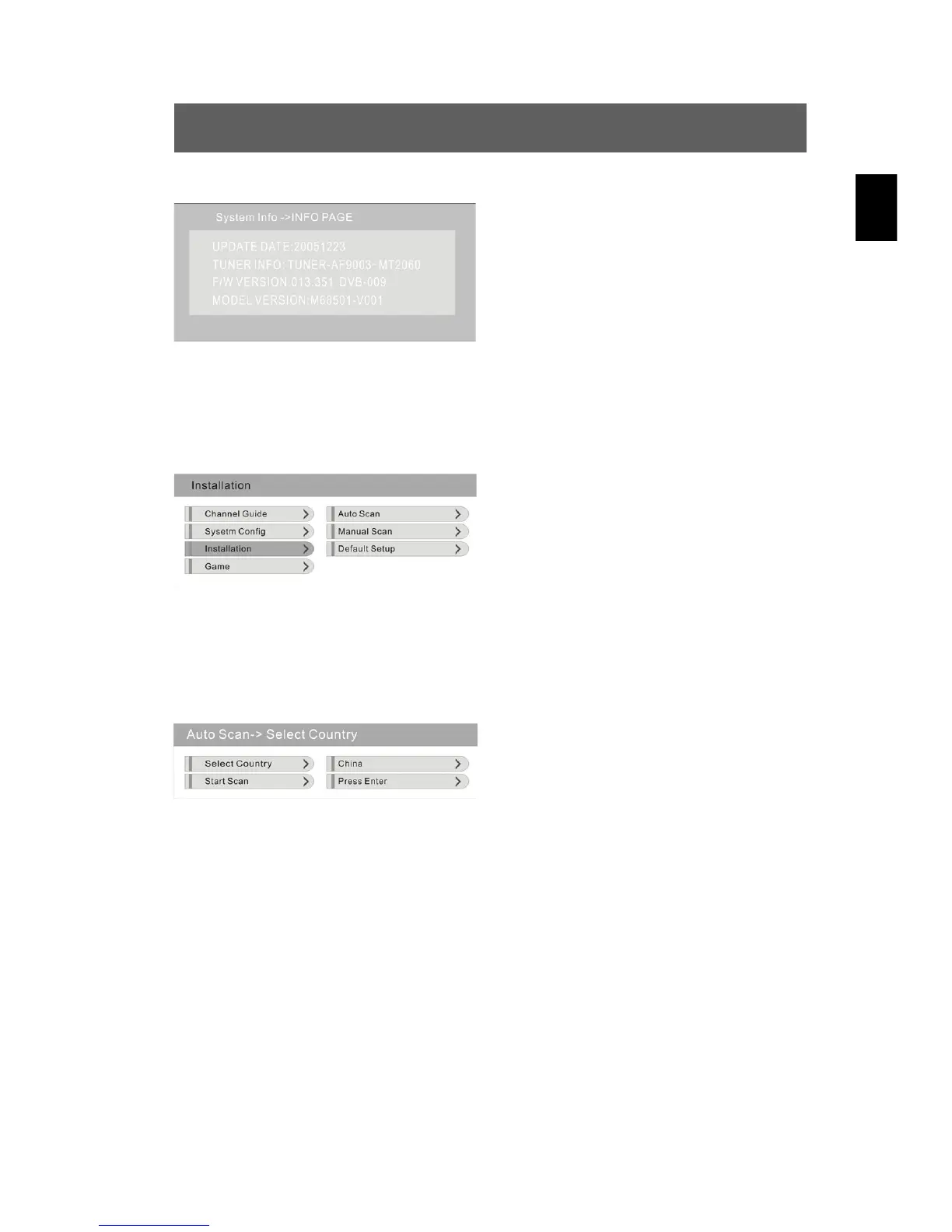 Press to select the “Select Country” option, confirm using ENT and