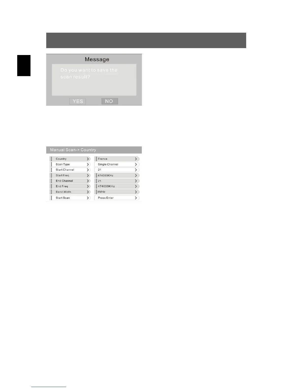 Manual channel search (Manual Scan)