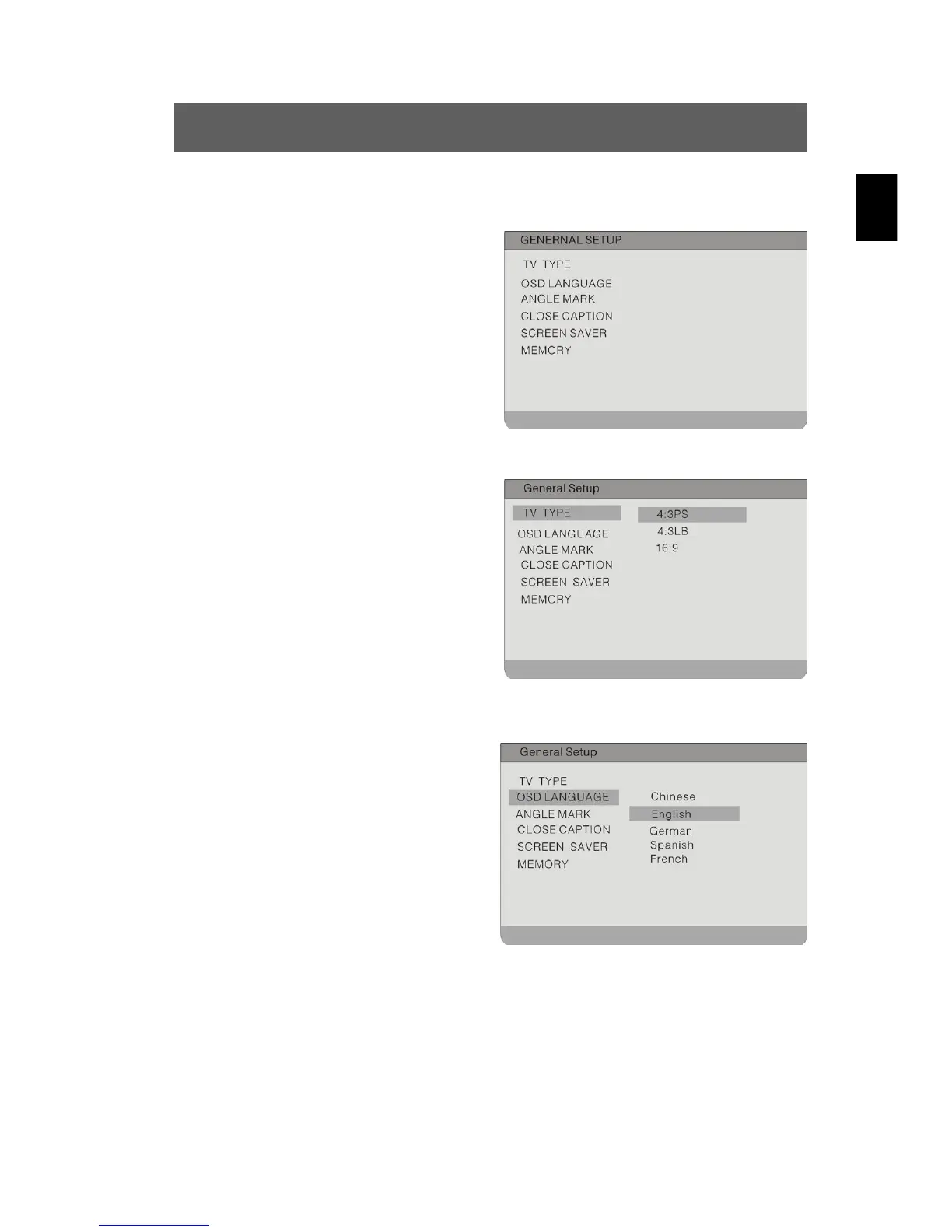 Possible settings are: 4:3 PS, 4:3 LB