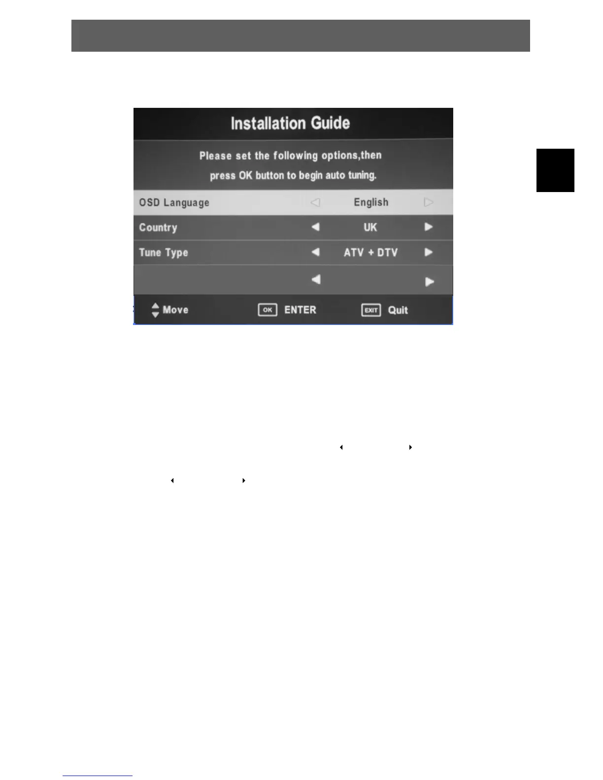 - Press “TV menu” to skip the analogue TV (ATV) channel search.