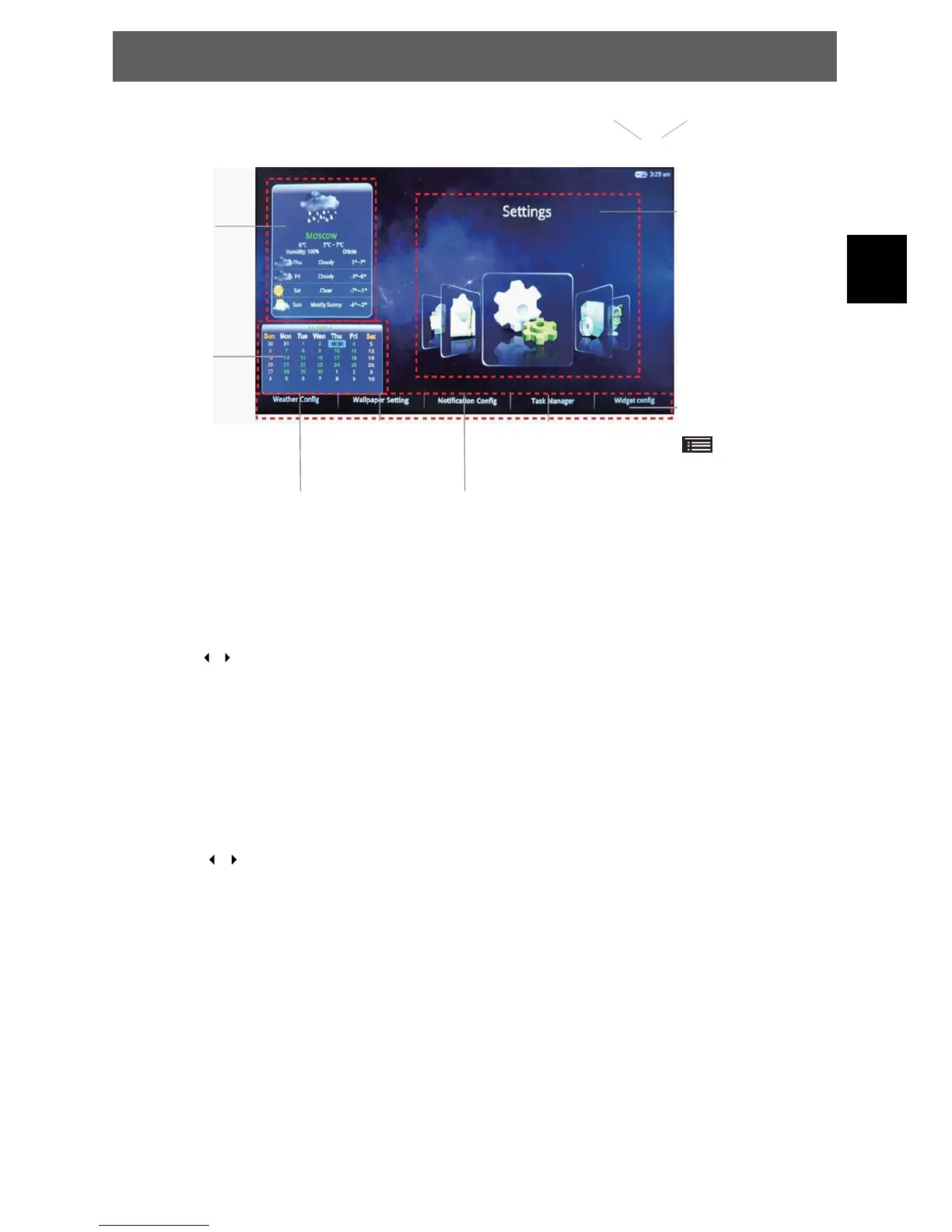 Please use the arrow keys to select the accessible parts of the screen or in sub menu.