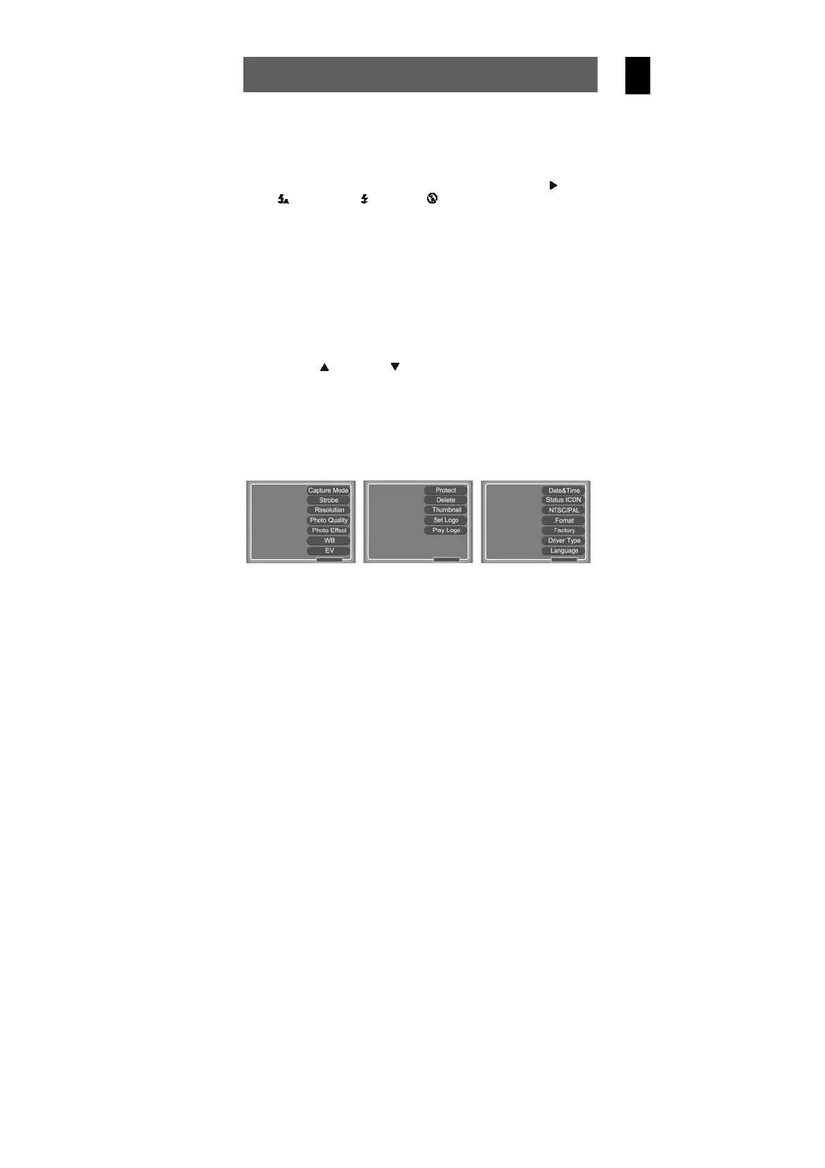 Die Kamera besitzt ein Bild-, Wiedergabe- und Einstellungsmenü.