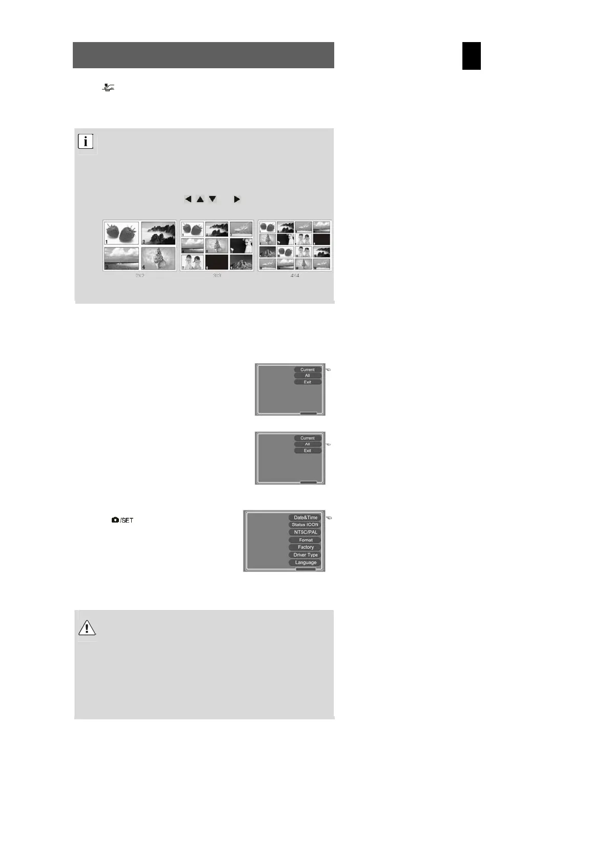 nine or sixteen thumbnails can be shown on the LCD.