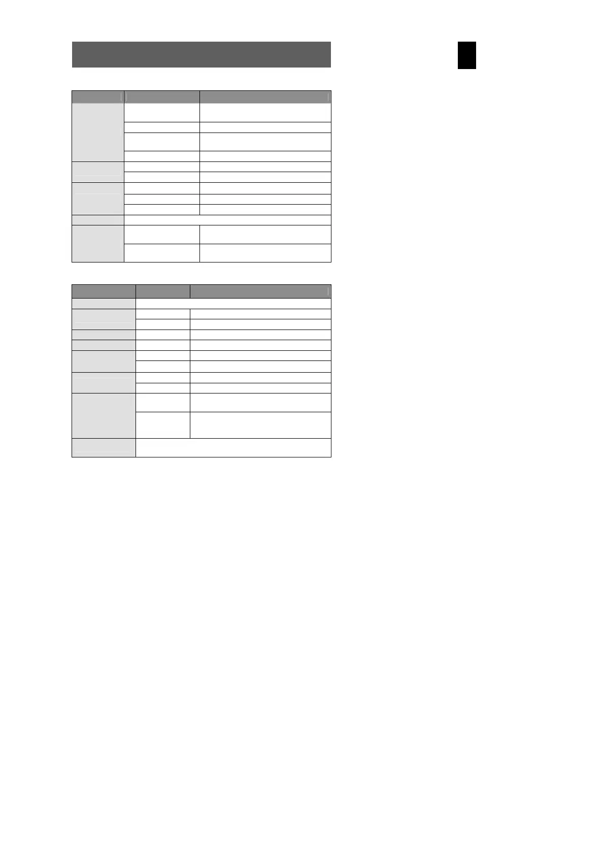 Menu Setting Description